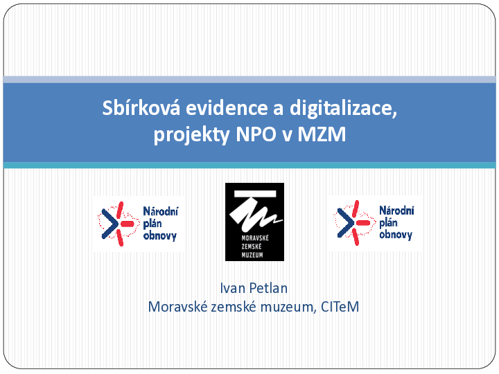 Sbírková evidence a digitalizace, projekty NPO v MZM