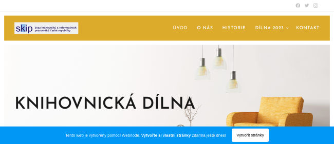Knihovnická dílna Adresa webuhttps://knihovnicka-dilna.webnode.cz/ Web ve WebarchivuArchivovaná verze webu Záznam v katalogu Národní knihovny ČROdkaz do katalogu Snímek obrazovky Typ webu Akce Aktuálnost webu Aktivní